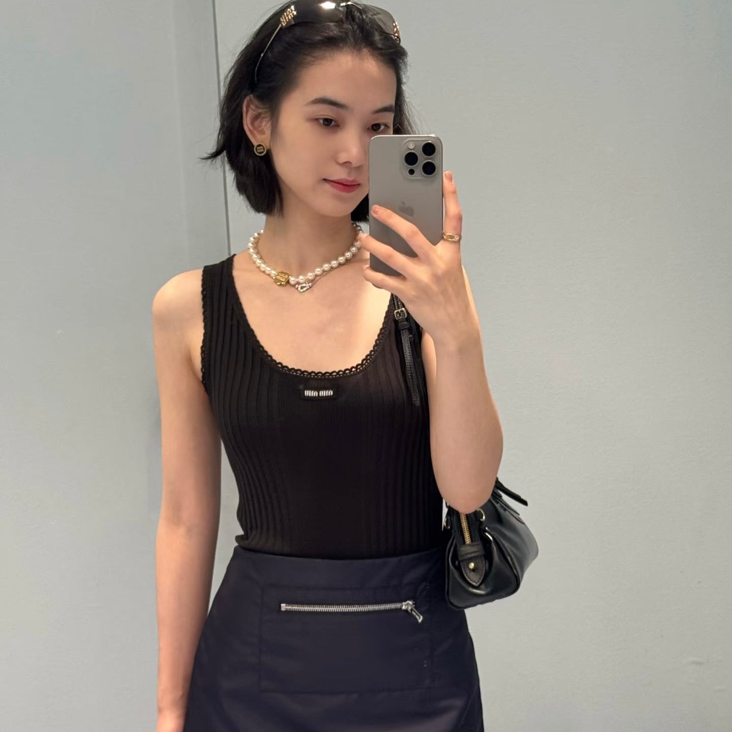 MIUMIU 26SS knitted off-the-shoulder camisole