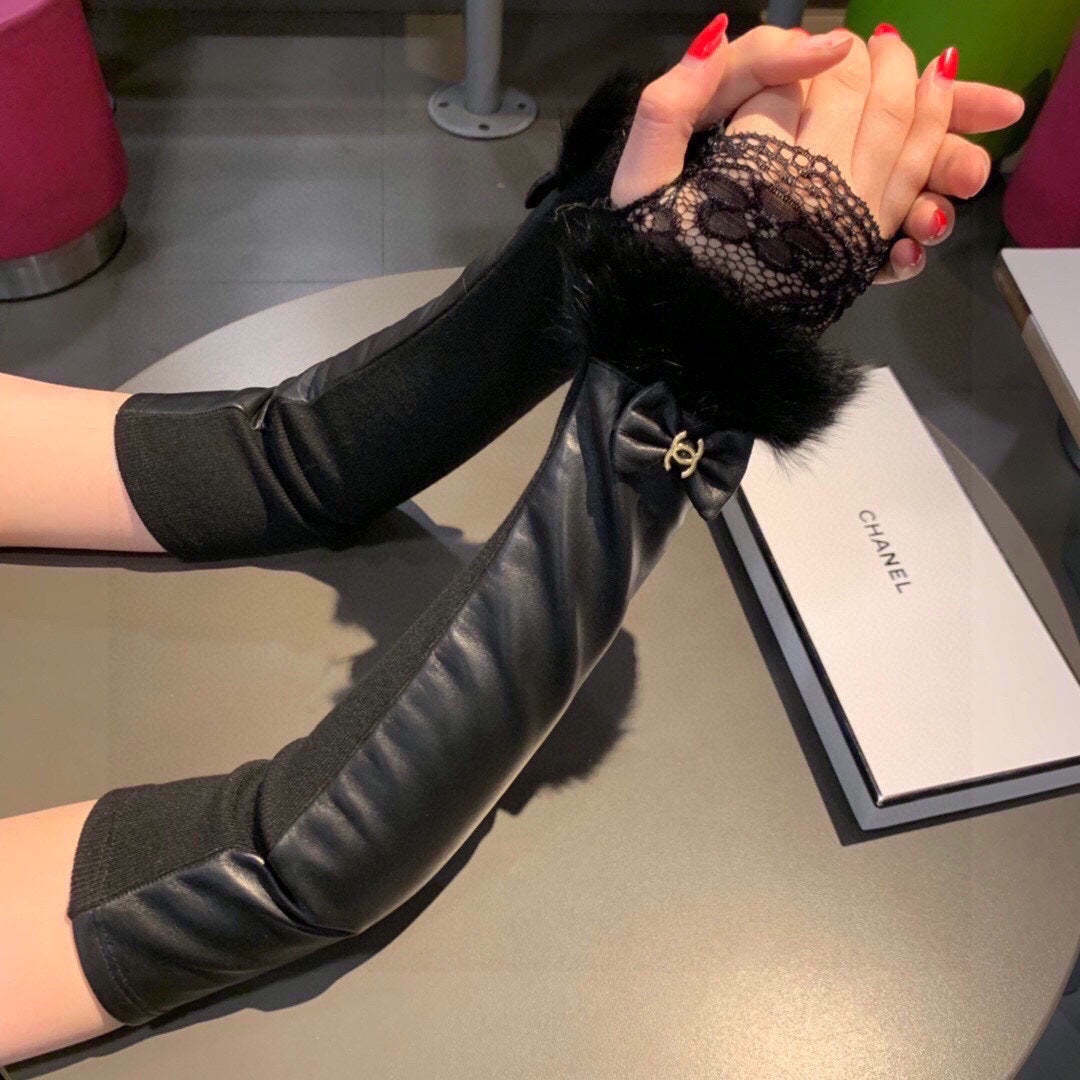 C New Sheepskin + raccoon fur gloves