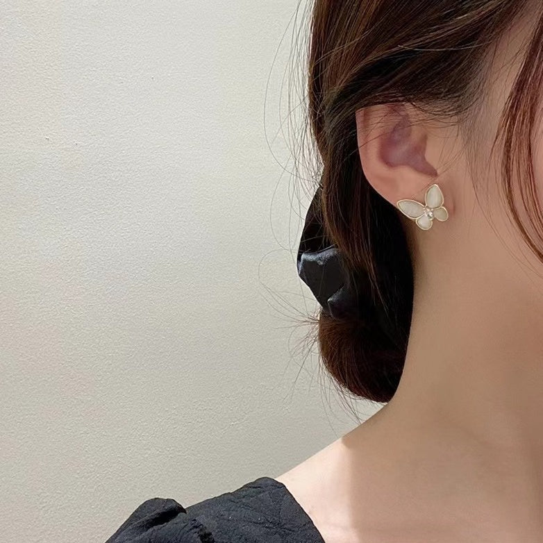 Four-leaf clover butterfly mother-of-pearl earrings
